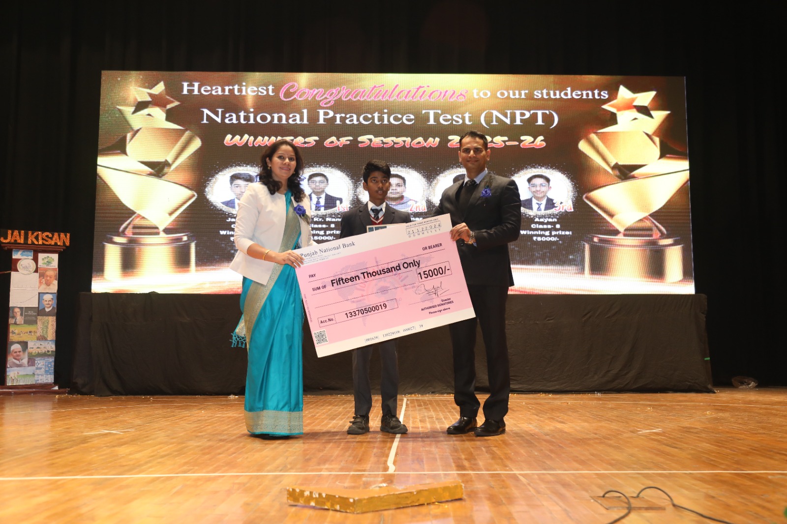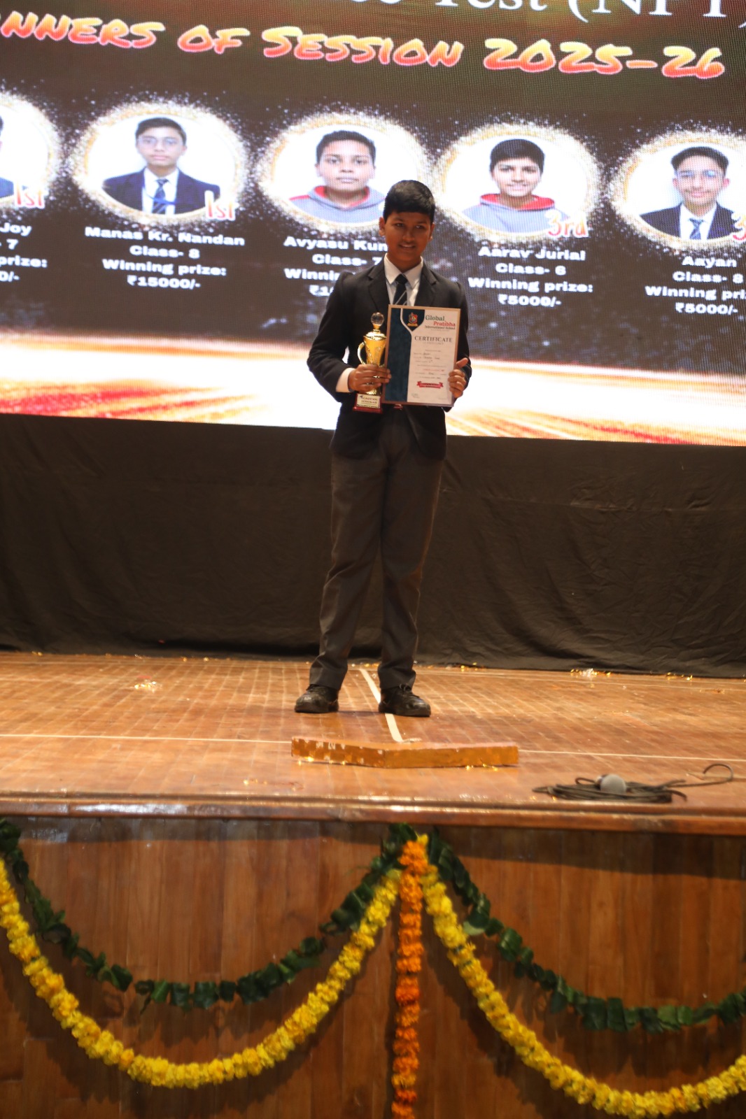 Global Pratibha International School recently conducted the NPT exam, and the top performers were honored at the annual function. The winners were felicitated with cheques by Principal Ms. Sweety and President of Udayan Group of Schools, Mr. Deepak Singh.